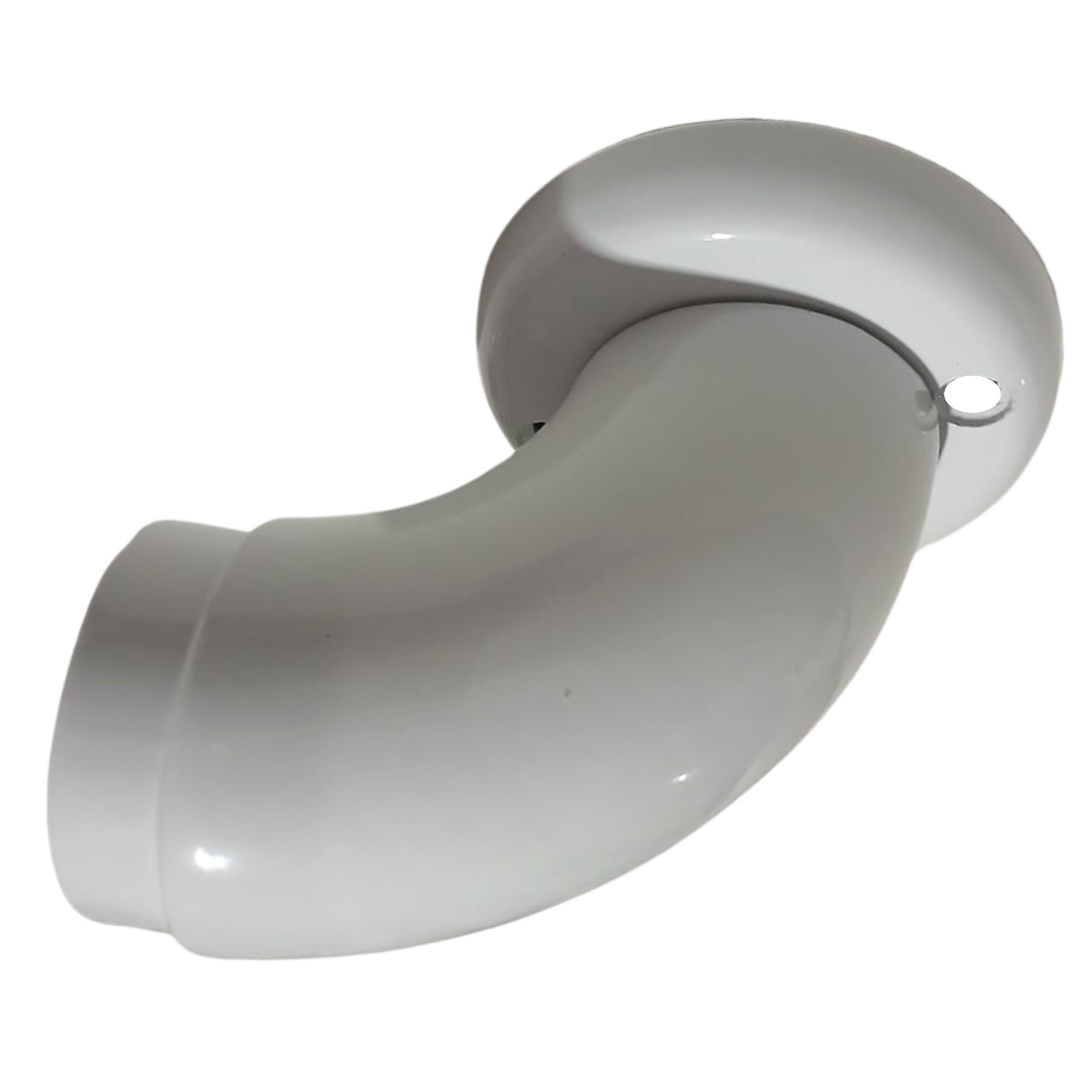Este terminal é todo feito em alumínio fundido com pintura eletrostática branca, acompanha uma flange para dar acabamento e fixar junto à parede, e recomendamos o parafuso de 4.8mm x 50mm com cabeça chata para fixar ele na parede.