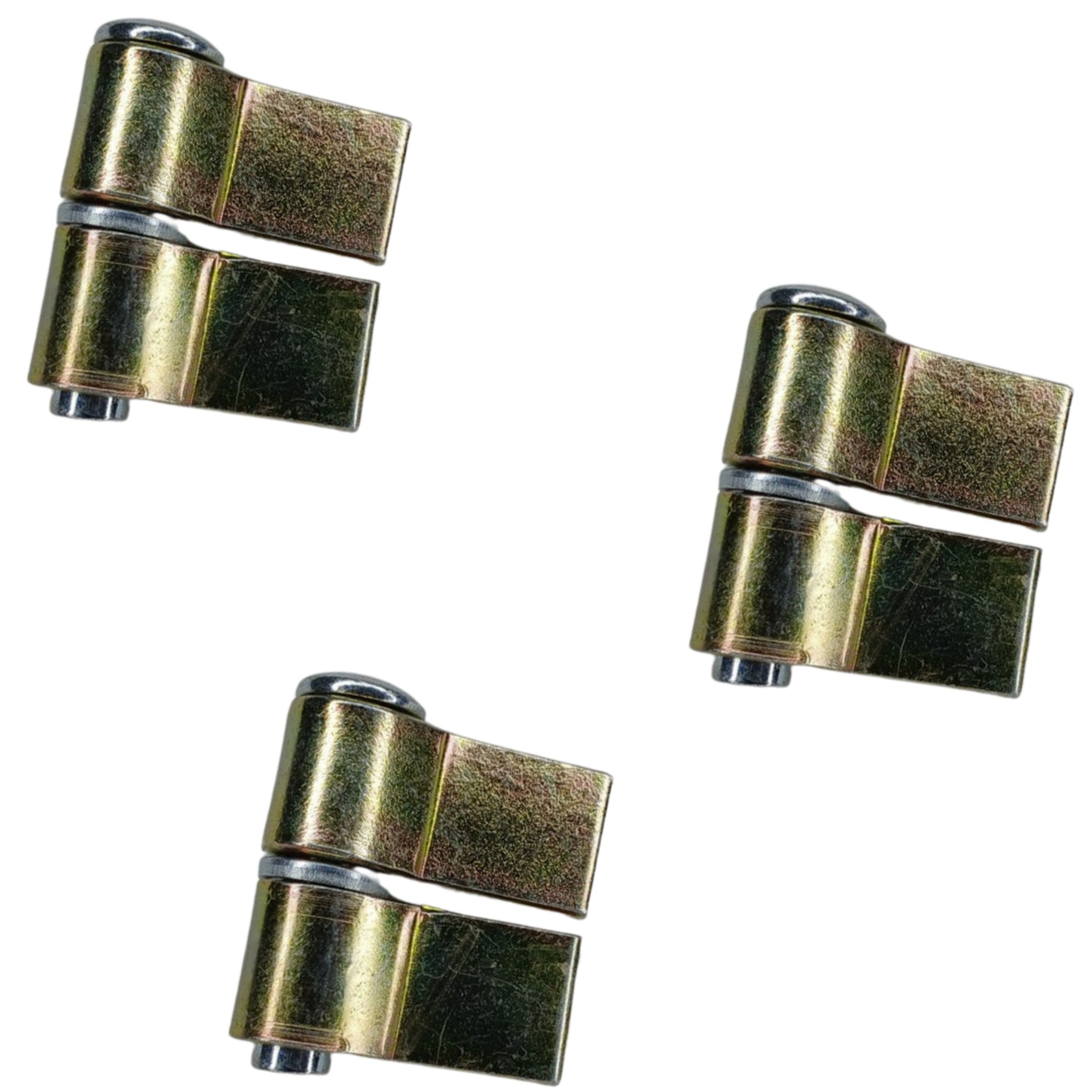 Dobradiça comum em portões ou portas de ferro, são preparadas para aguentar altas cargas de trabalho, estas dobradiças são feitas em chapas de aço maciço de 3mm de espessura, de aço bicromatizado, aguentam com tranquilidade o calor da solda, e funcionam perfeitamente bem em condições extremas de trabalho, seja em áreas no interior do Brasil ou em áreas junto ao litoral, podem ser utilizadas em áreas externas ou áreas internas.