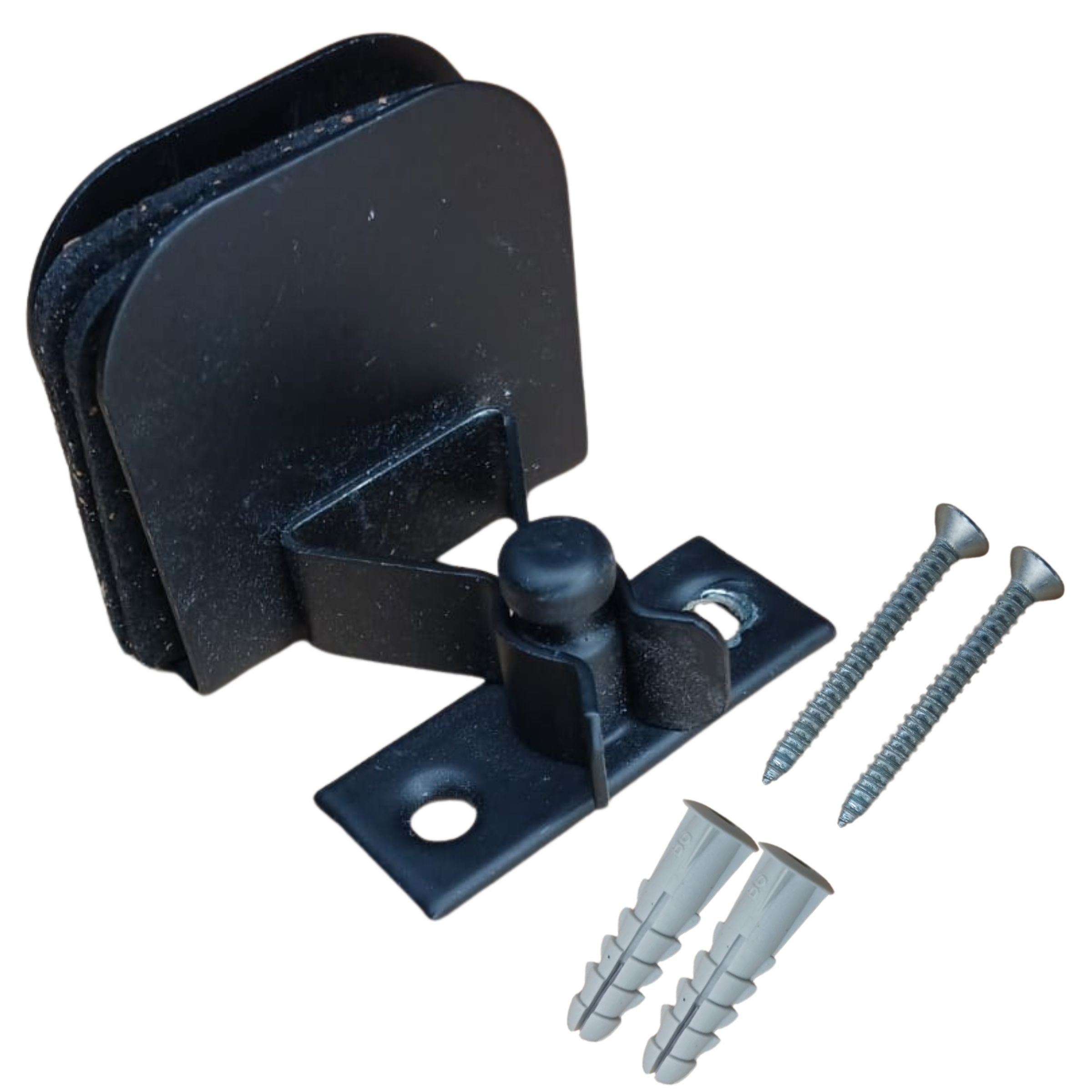 O fixador de porta pode ser usado em portas de vidro de 6mm, 8mm ou 10mm, e não precisa de furar o vidro, a peça é presa por pressão.
