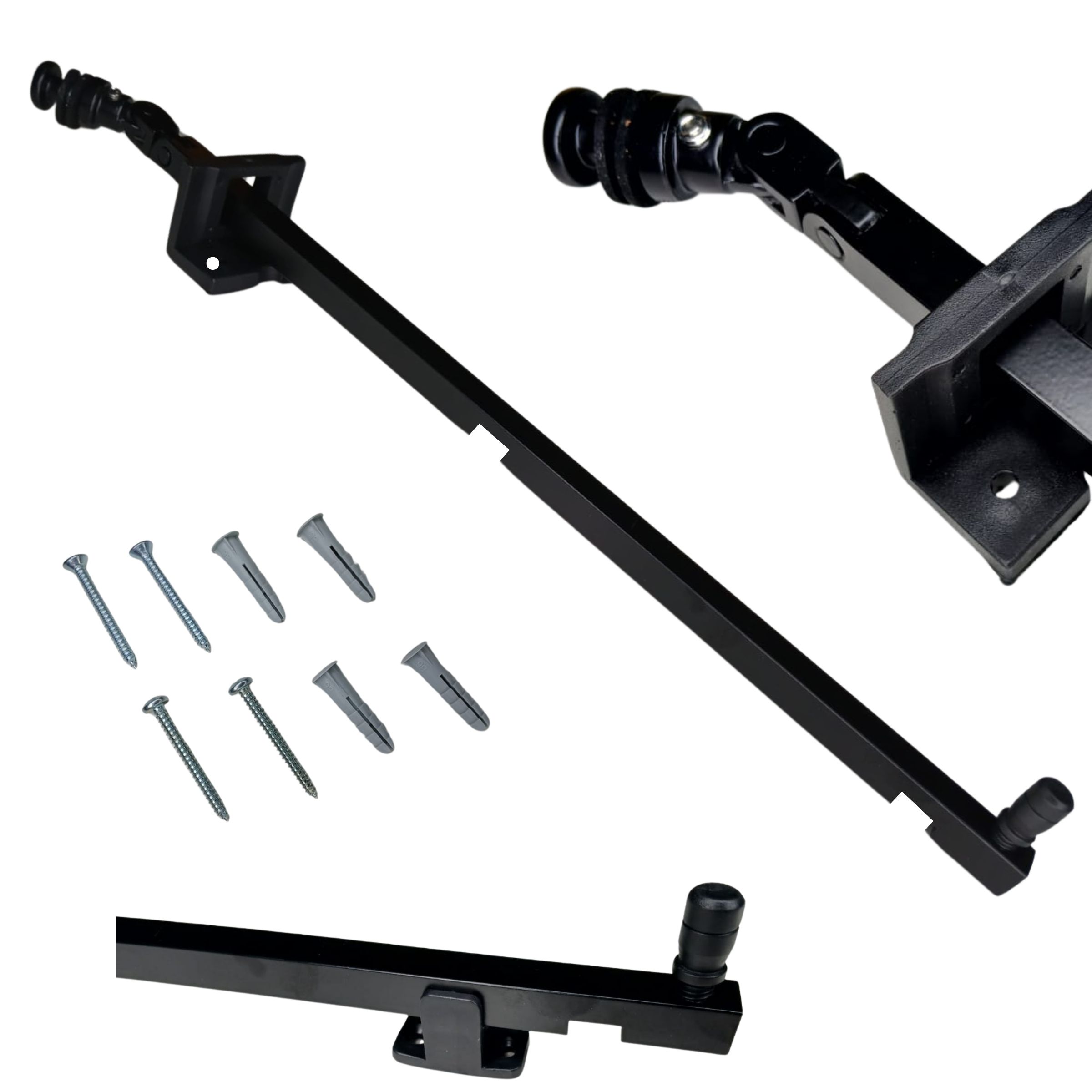 Esta haste ou trava limitadora é feita de alumínio sólido ou maciço, o que deixa ela mais forte, super forte, então caso você tenha um vidro pesado ela vai aguentar numa boa, pois não é tubular como a maioria das hastes.